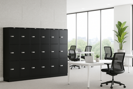 Garderobebokse med 12 eller 16 rum og indbygget kodelås (Ref099)