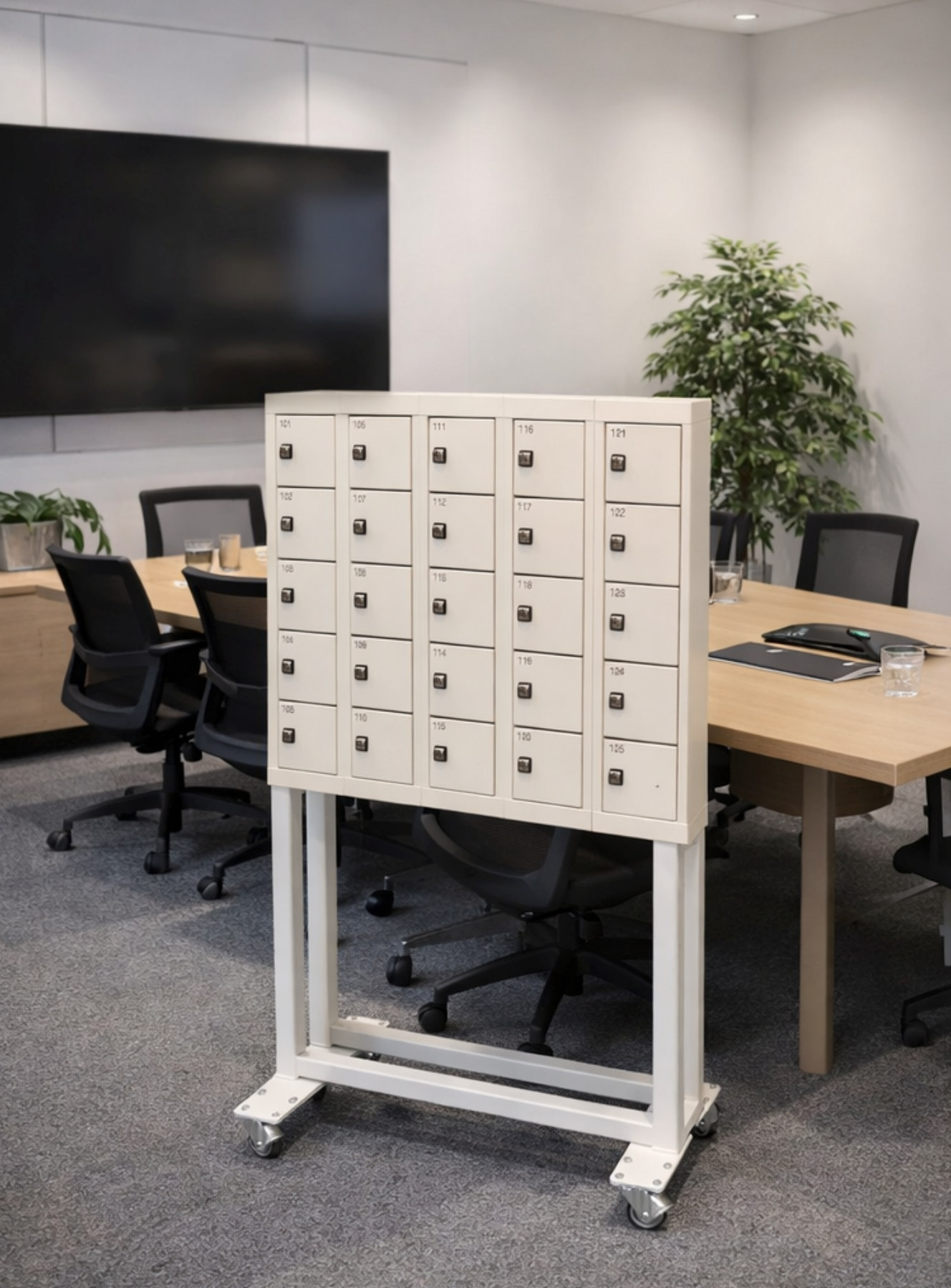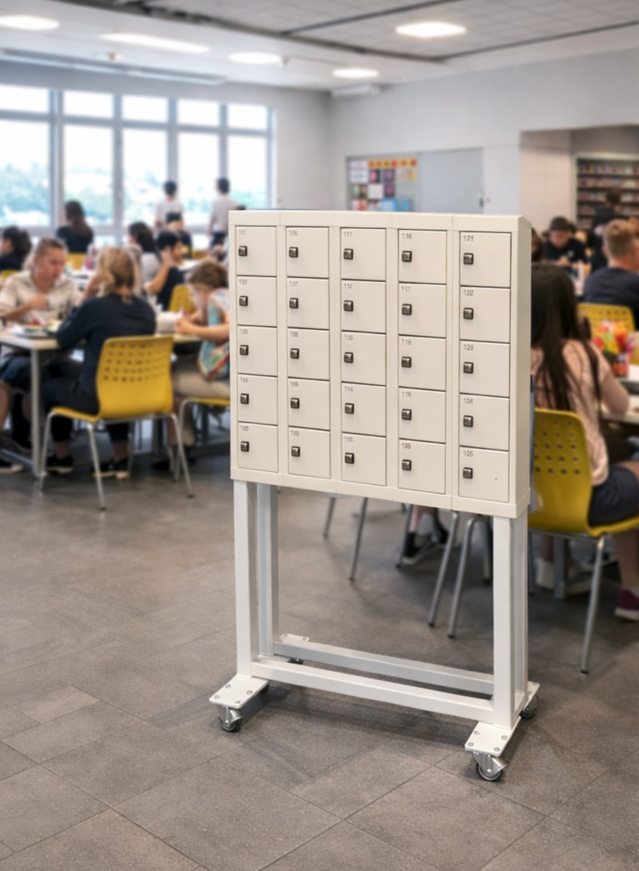 Kabinettet er monteret på speciallavet stativ med hjul, der gør enheden nem at placere efter ønske.