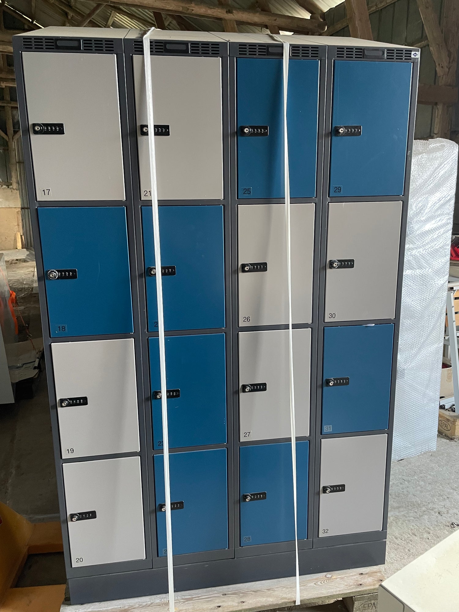 Garderobebokse med 16 rum. Uden strøm og med indbygget kodelås (Ref089)