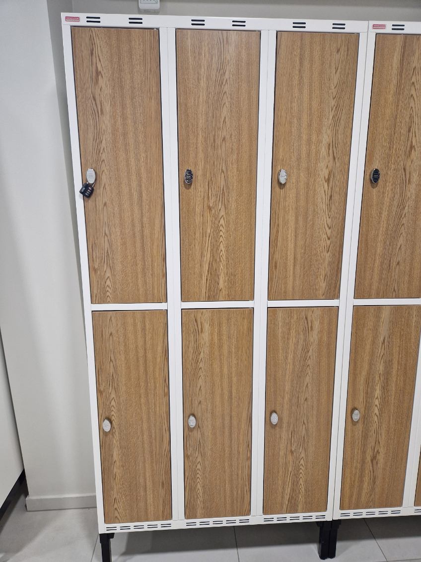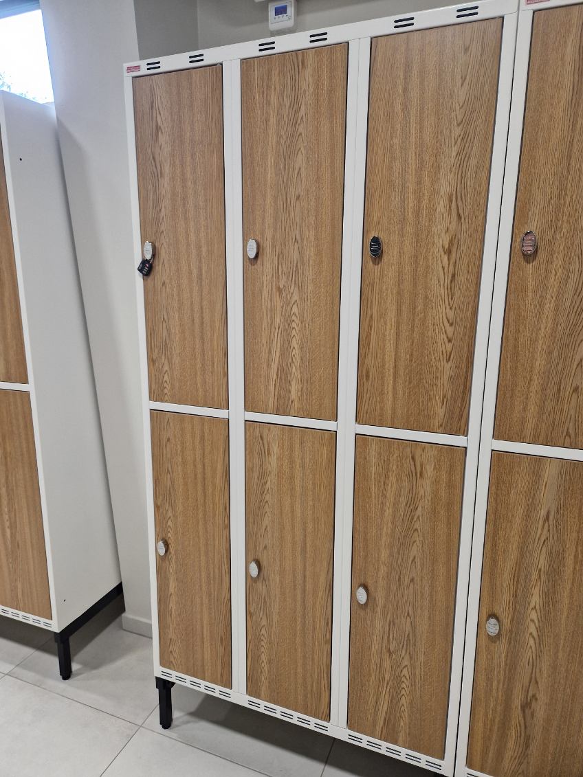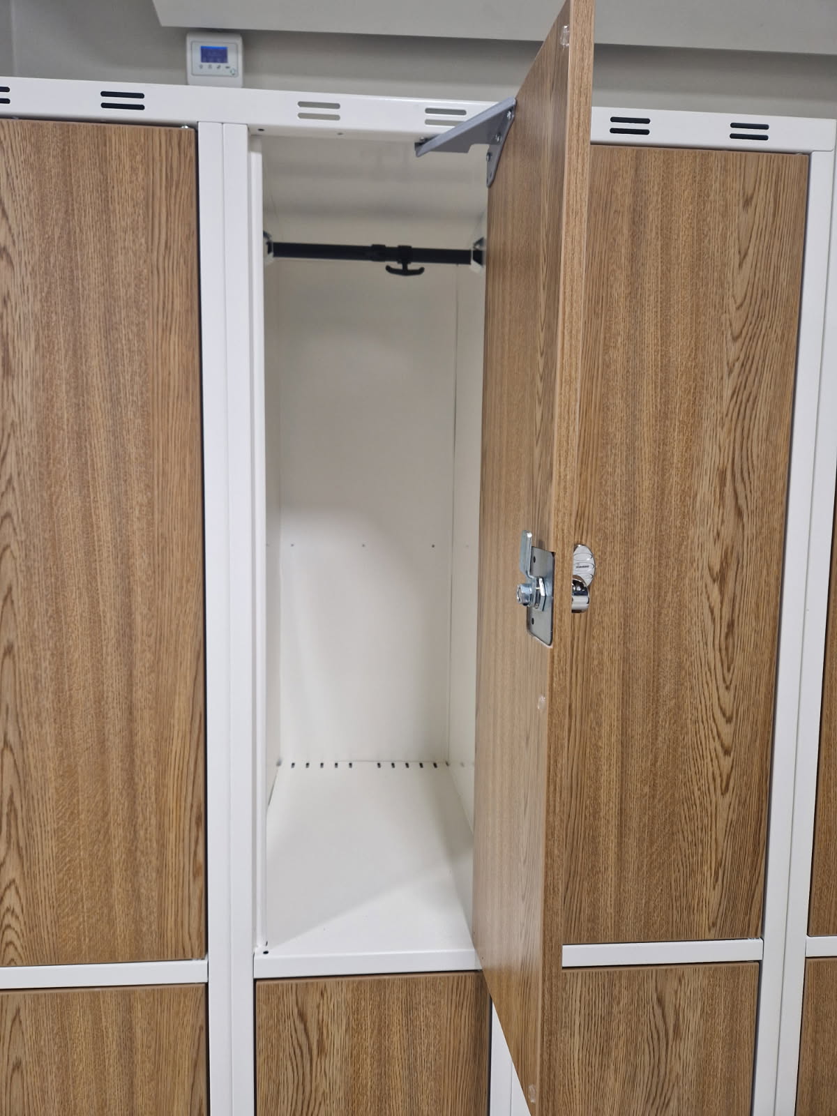 Flotte stilrene garderobeskabe på ben med plads til masser af udstyr.