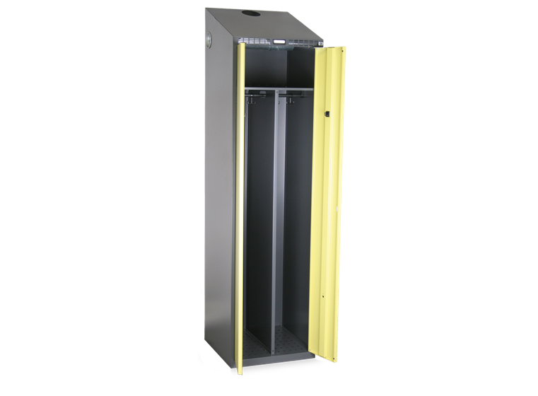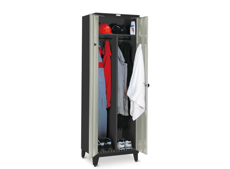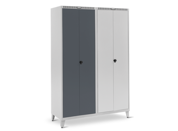 Blika har et meget bredt sortiment indenfor garderobeskabe bl.a. dobbeltskabe, Z-skabe , rentøjskabe, snavsetøjskabe, brandmandskabe.