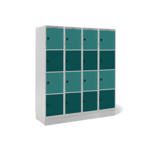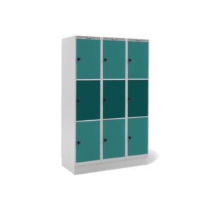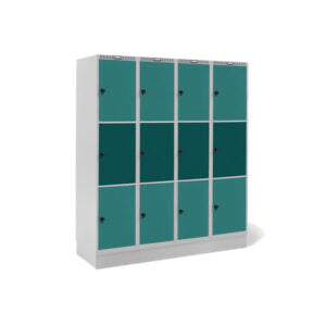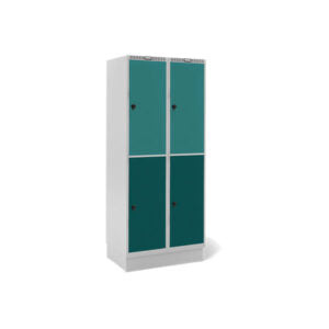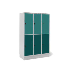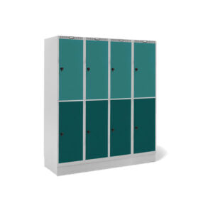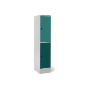 Garderobebokse med dobbeltpladet låger, fremtrukket hylde og solid dørstop. Velegnet til de lidt ”hårdere” miljøer som fx idrætsklubber, træningscentre og offentlige rum.
