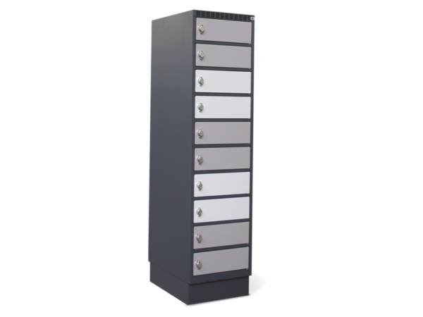PC serien af skabe er den enkle løsning, som matcher behovet for aflåst opbevaring og evt. opladning på kontoret, skolen eller i produktionen.