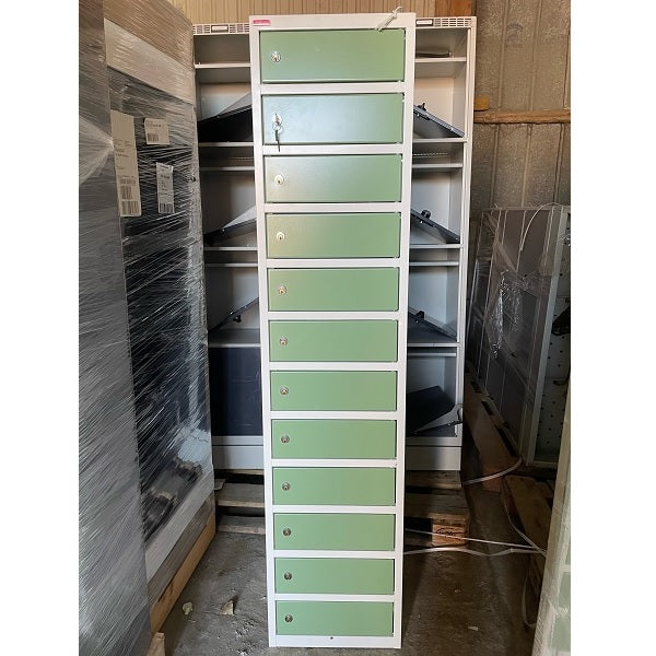 PC skab til opbevaring af laptop - bærbar computer. 12 rum i højden med lige top.