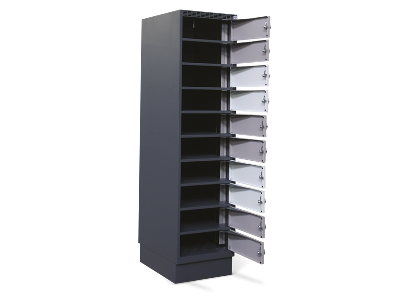 PC 110 er et pladsbesparende skab til opbevaring/opladning af